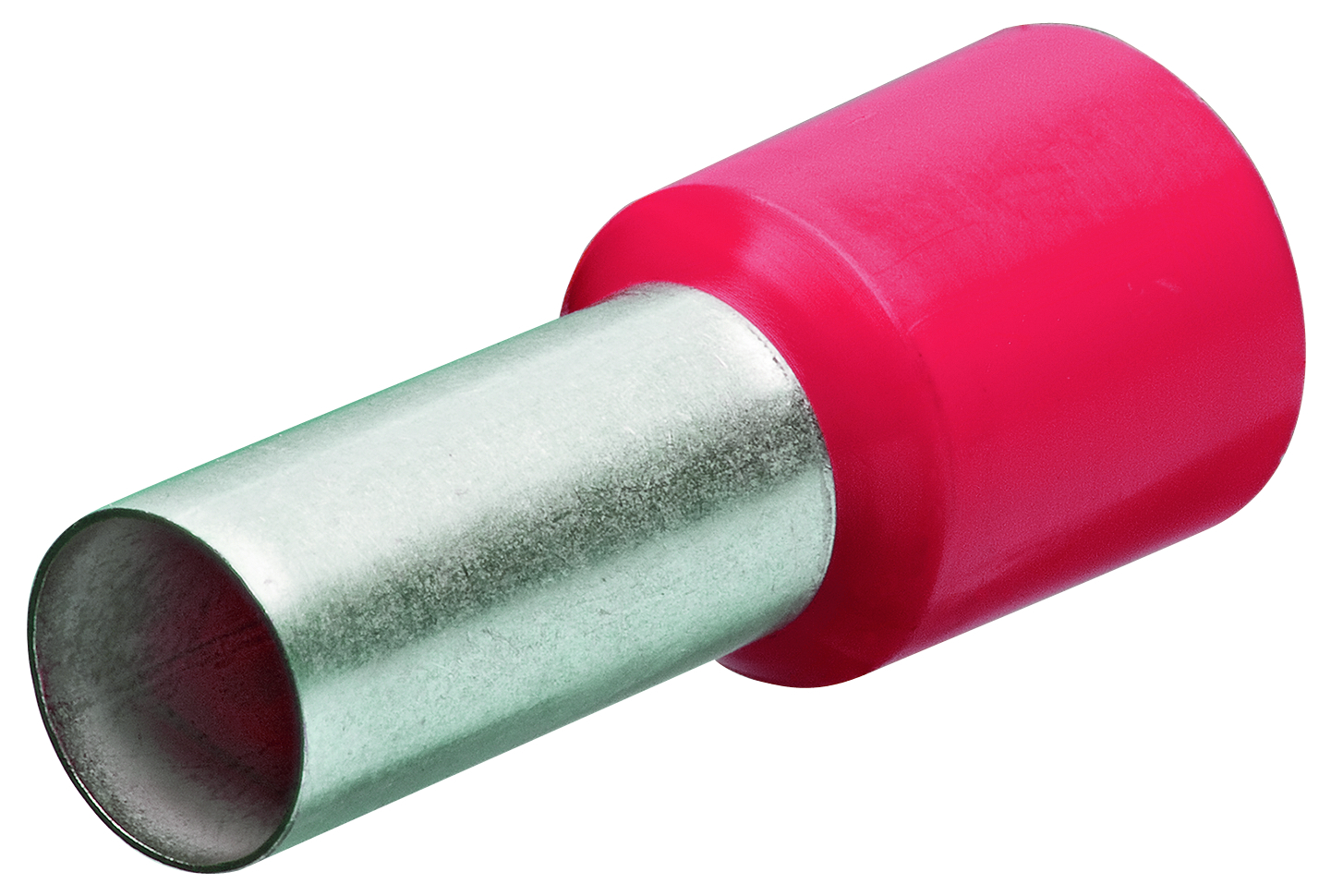 97 99 337 Wire ferrules with plastic collar Insertion funnel made of polypropylene. Heat resistant up to 105 °C. Material: E-Cu. Surface electro tin plated. Minimum coating thickness 3 µm. UL-certified. Nominal size: 10 mm². Content: 100 pieces. Colour: red. Cable10mm²AWG8ColourredL122mmL212mmd14.5mmd27.6mmS10.2mmS20.4mmQuantity100InsulationPPMaterialCopperSurfaceTinned