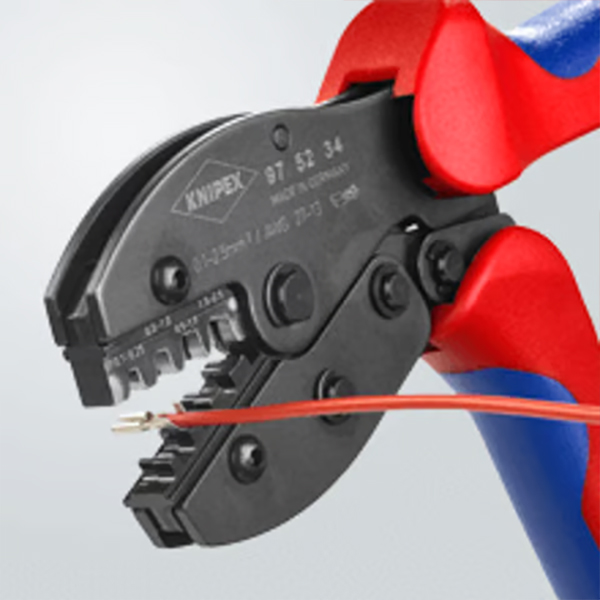Knipex 97 52 34 phù hợp cho thợ điện, kỹ thuật viên điều khiển và điện tử cần bấm cos trần dạng mở với độ lặp lại cao. Thiết kế chuyên dụng, khuôn cố định và lực bấm hiệu chỉnh sẵn giúp duy trì chất lượng mối nối ổn định trong thời gian dài sử dụng.