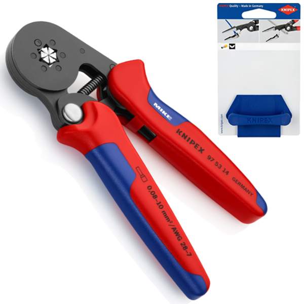 Kìm bấm cos Knipex 97 53 14 thuộc dòng kìm bấm cos tự điều chỉnh. Chuyên dùng để ép chặt đầu cos (ferrules) theo tiêu chuẩn DIN 46228 phần 1 và 4. Dụng cụ nhận diện tự động tiết diện của đầu cos, tạo ra các mối nối ổn định và đồng nhất trong cả quá trình thi công. Thiết kế thao tác ngang (lateral feed) và biên dạng ép lục giác phù hợp cho những vị trí lắp đặt hạn chế về khoảng cách giữa các điểm kết nối.