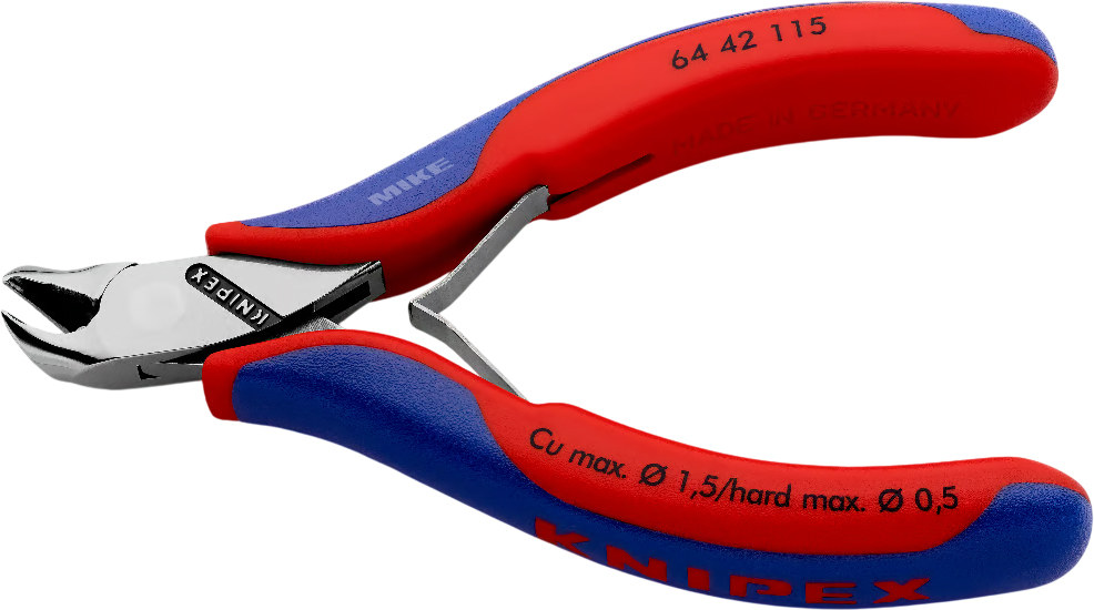 Kìm cắt linh kiện đầu cuối Knipex 64 42 115 phù hợp cho thợ điện tử chuyên nghiệp. Các kỹ sư R&D, nhà sản xuất module vi điều khiển, bộ truyền tín hiệu hoặc bộ chuyển mạch. Kềm kiểm soát chính xác từng thao tác nhỏ nhất trong không gian thao tác chật hẹp, trên linh kiện nhỏ, cần độ tinh xảo cao.
