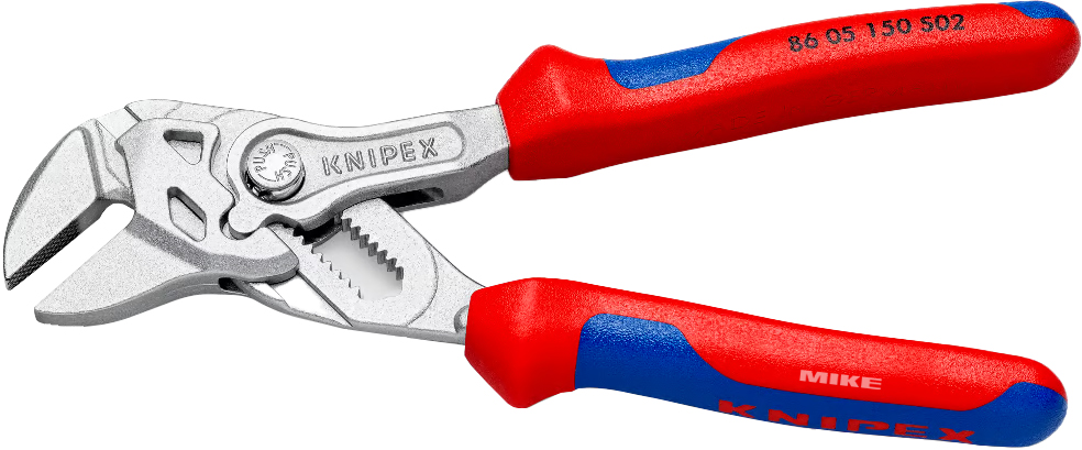 Knipex 86 05 150 S02 siết mở bu lông nhỏ. Kềm giữ chi tiết máy khi lắp ráp, bấm dây rút. Kìm cờ lê cũng dùng uốn mép hoặc ép keo. Thiết kế nhỏ gọn, kẹp chắc và không làm hỏng bề mặt. Knipex 86 05 150 S02 phù hợp cho kỹ thuật viên làm việc trong môi trường dầu mỡ.