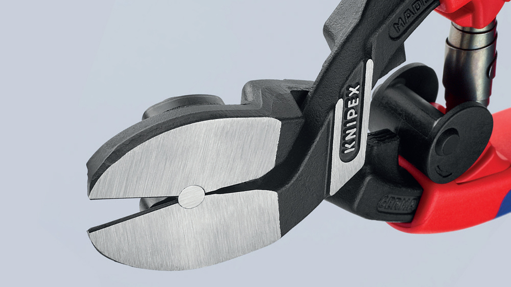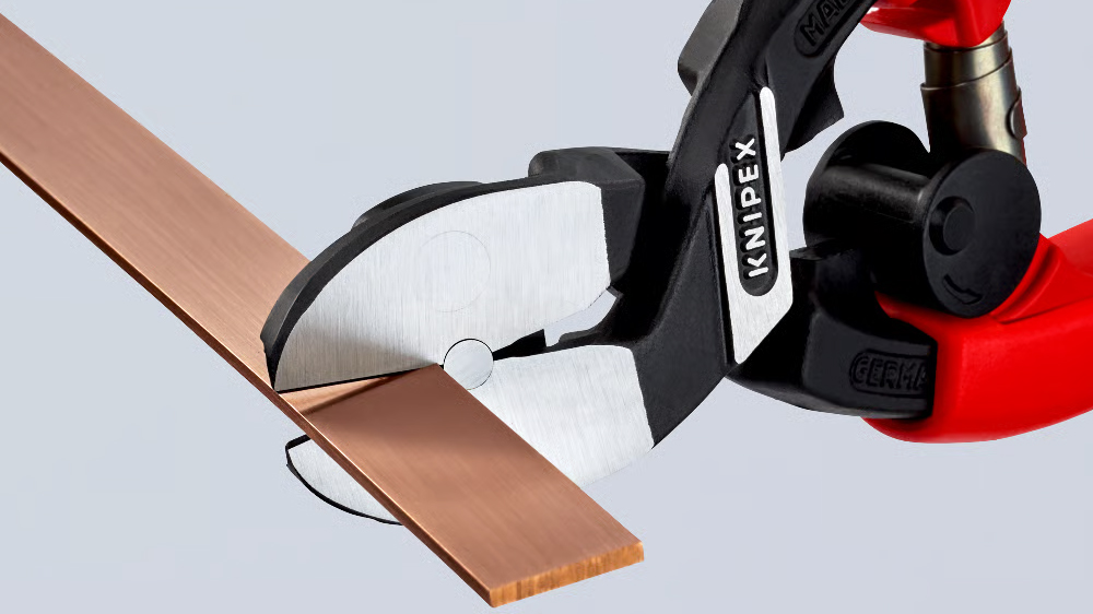 Knipex 72 62 200 thuộc nhóm kìm cộng lực chuyên cắt gọn kim loại mềm và vật liệu nhựa có tiết diện lớn. Lưỡi cắt được bố trí theo góc nghiêng 20°. Kết hợp thanh nối một bên giúp tạo không gian thao tác thoáng, thuận lợi khi cắt sát bề mặt. Cơ cấu cộng lực tối ưu làm giảm đáng kể lực tay. Đặc biệt khi cắt vật liệu dày hoặc phôi nhựa cứng.