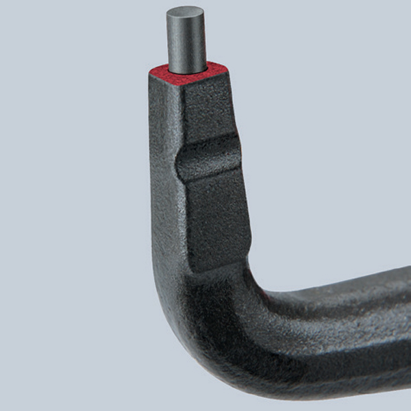 Mũi chốt Ø3.2 mm cho biết đường kính của mũi chốt trên kìm Knipex 48 11 J4 là 3.2 mm. Đây là phần mũi kìm tiếp xúc trực tiếp với vòng phe, thường được đưa vào hai lỗ nhỏ trên vòng để thao tác lắp hoặc tháo.