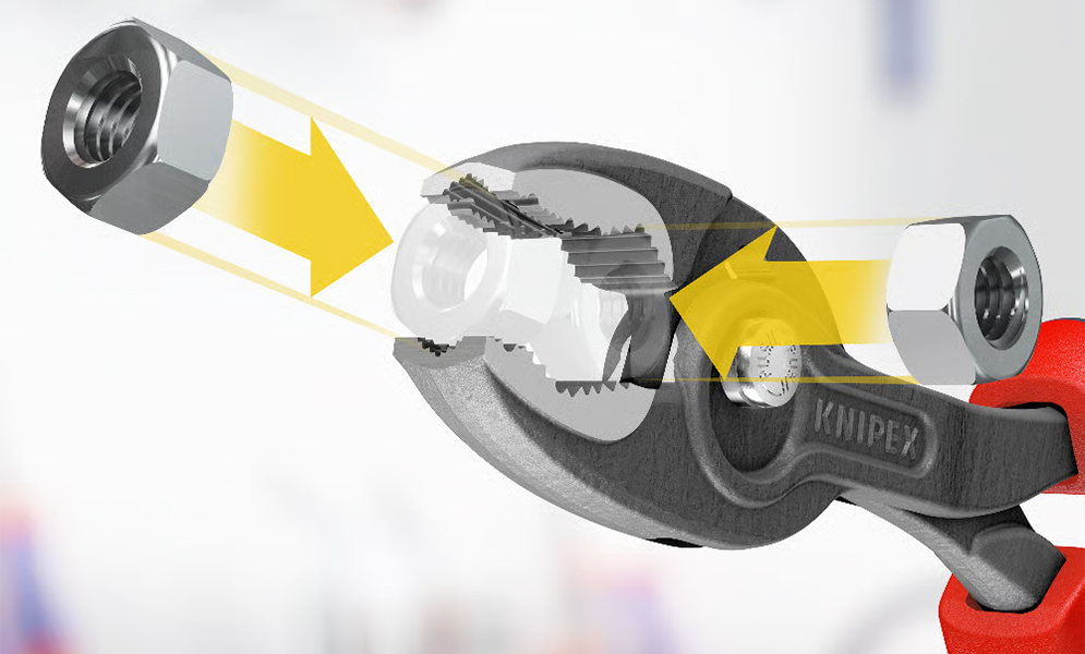 Kìm tháo ốc mòn TwinGrip Knipex 82 02 150 trở thành lựa chọn tối ưu trong thao tác tháo bu-lông, đai ốc, vít đã mòn đầu. Rút ngắn thời gian sửa chữa, hạn chế phải cắt, khoan hoặc thay thế chi tiết lắp ghép, đồng thời giảm nguy cơ hư hại xung quanh vùng làm việc.