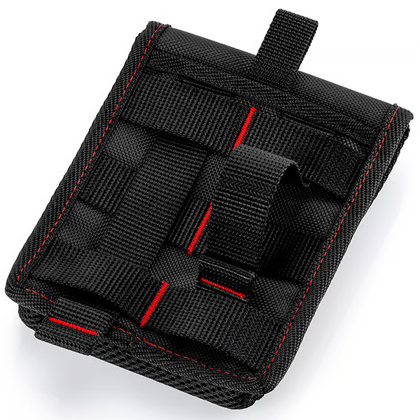 Mặt sau có hai dây đai vải chắc chắn để gắn trực tiếp vào hệ thống dây MOLLE của balo Knipex Modular X18. Ngoài ra, túi cũng có thể dùng như túi đeo thắt lưng linh hoạt trong công việc. Kích thước 190 × 135 × 40 mm, khối lượng 116 g, gọn nhẹ nhưng đủ để chứa nhóm phụ kiện quan trọng cho từng dự án.