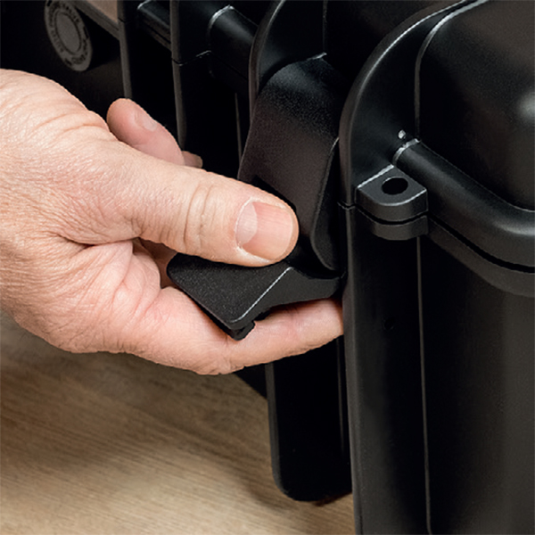 | Có thể sử dụng như bệ đứng hoặc ghế ngồi | Cơ cấu khóa vali bằng chốt gạt chắc chắn | Cố định bảng dụng cụ an toàn, ngăn dụng cụ rơi khỏi khoang đáy |