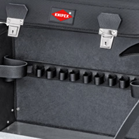 Túi và vali đựng dụng cụ của Knipex luôn đạt được sự cân bằng hợp lý giữa không gian chứa lớn, kết cấu chắc chắn và kích thước nhỏ gọn cùng trọng lượng nhẹ. Chúng được thiết kế phù hợp với nhu cầu của thợ thủ công và thợ cơ khí. Như mọi khi tại Knipex, quá trình sản xuất và hoàn thiện đều hướng đến hiệu quả sử dụng tối đa – và bền lâu.