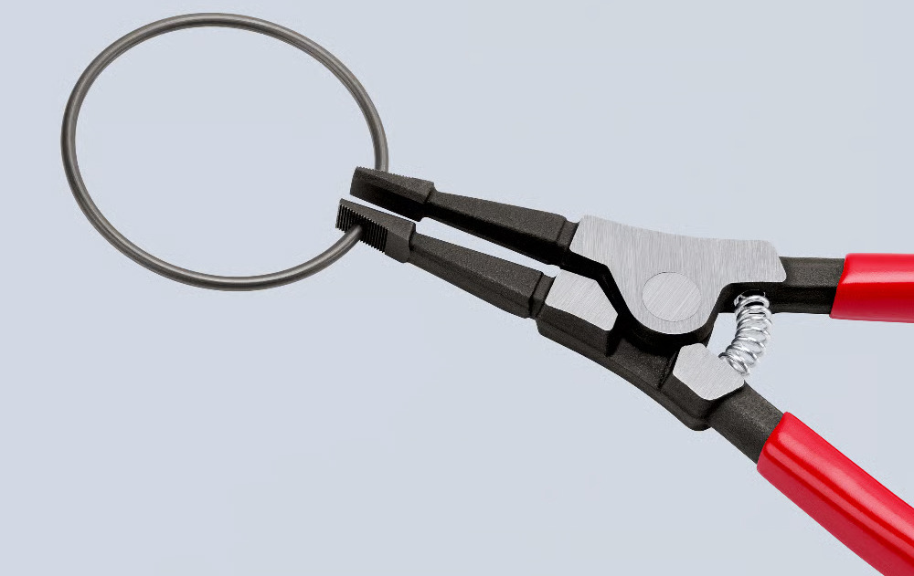 Kìm phe ngoài Knipex 45 11 170 dùng cho thao tác tháo lắp vòng phe chặn trên trục trong trường hợp vòng phe không có lỗ kẹp. Cấu trúc đầu dẹt, kết hợp bề mặt răng cưa gia công trực tiếp. Tiếp xúc trực tiếp với khe hở của phe, kiểm soát lực ổn định. Hạn chế trượt, gây biến dạng vòng phe trong quá trình tháo lắp.