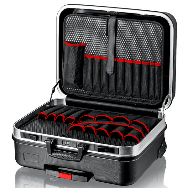 Vali đồ nghề Knipex 00 21 06 LE BIG Basic Move thích hợp cho thợ cơ khí, kỹ thuật viên hoặc bảo trì cần mang dụng cụ khi di chuyển xa. Vỏ vali chế tạo từ nhựa ABS đen chịu va đập. Khung nhôm bao quanh và bản lề kim loại chắc chắn. Khóa số 3 mã kết hợp cùng hai khóa lật kim loại bảo vệ an toàn.